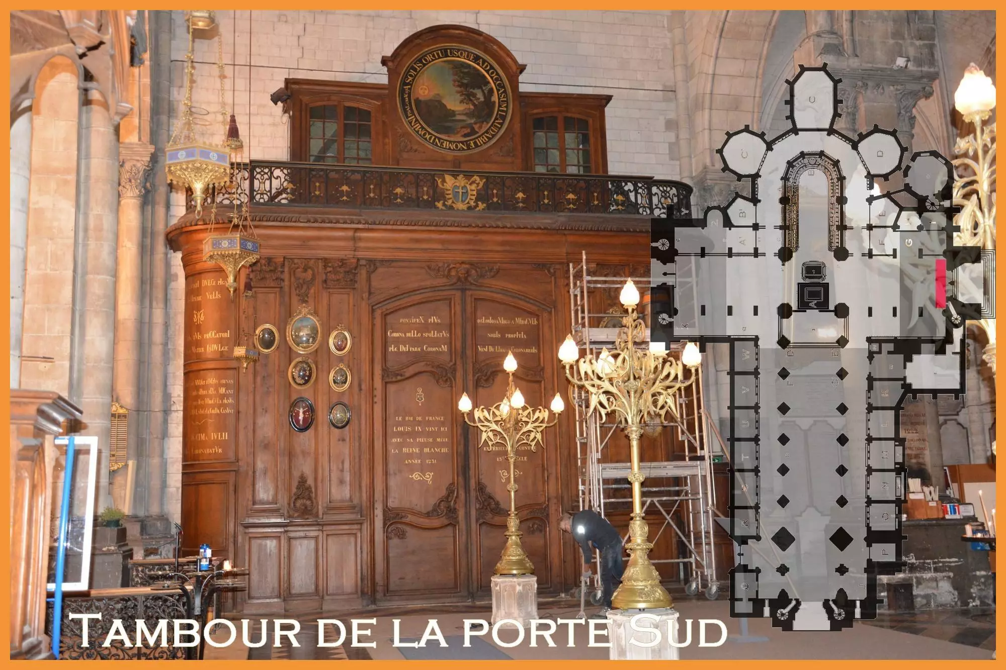 Durant le moyen-âge ( de la période moyenne jusqu'au bas moyen-âge ) les églises furent pour beaucoup d'entre elles très bien décorées ( intérieurement et extérieurement ), les murs, les piliers, les voutes, les arcades étaient peints de couleurs chatoyantes. Ce décorum était de nature à attirer les fidèles pour qui le déplacement à l'église n'était plus seulement un acte de dévotion mais devenait également un émerveillement. Les fidèles pouvaient voir des représentations humaines, animales, naturelles, qu'ils ne voyaient nulle part ailleurs. Notre-Dame à l'instar des autres Cathédrale disposait de ces atours, et vous trouverez ci-après une reconstitution d'une partie du transept d'après les documents historiques en notre possession. Abstraction faite de l'architecture intérieure au niveau du Choeur qui était différente au XIVèmesiècle de celle que nous connaissons aujourd'hui, abstraction faite également des caméras des micros et appliques d'éclairage modernes, vous voyez le décorum que les fidèles purent admirer du XIVèmeau XVIIèmesiècle.